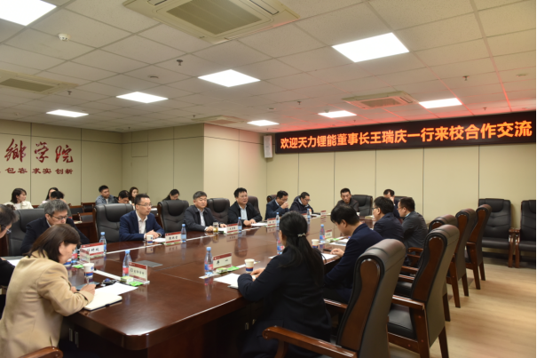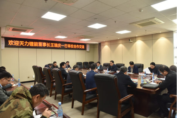 4月1日,天力锂能董事长王瑞庆一行10人到学校考察交流。校长王孝俊、副校长杨钧、张银堂及相关部门负责同志参加交流。